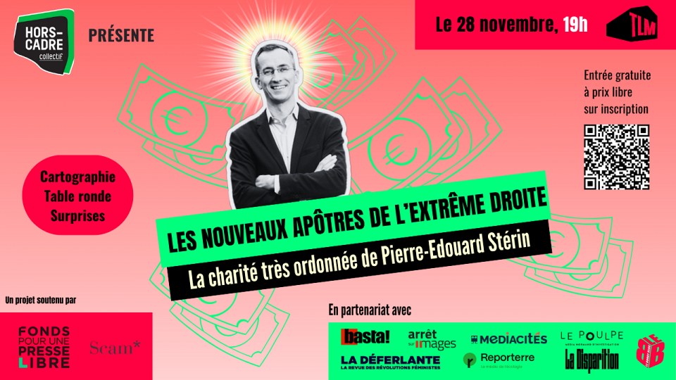 « Les Nouveaux apôtres de l’extrême droite : la charité très ordonnée de Pierre-Edouard Stérin. » Tel est le projet sur lequel travaille depuis des mois le collectif de journalistes pigistes Hors Cadre. En février dernier, ces journalistes indépendantes ont remporté un appel à projet du Fonds pour une presse libre, « Extrême droite : Enquêter, révéler, démontrer », qui leur permet de mener à bien un important travail d’investigation sur un milliardaire engagé dans un combat culturel et idéologique : Pierre-Edouard Stérin.