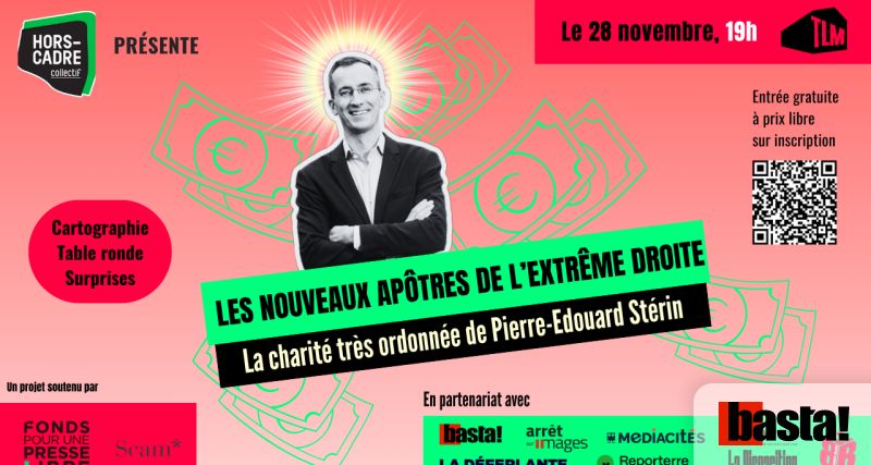Parce que derrière ces soutiens se cache un projet politique, le collectif Hors Cadre a choisi de se pencher sur plusieurs de ces structures, qui promeuvent des valeurs conservatrices. « Les nouveaux apôtres de l’extrême droite : la charité très ordonnée de Pierre-Edouard Stérin », ce sont plus de treize enquêtes menées par dix journalistes. Celles-ci sont diffusées sur Arrêt sur Images, Le Bondy Blog, La Déferlante, Reporterre, Le Poulpe, La Disparition, Mediacités…